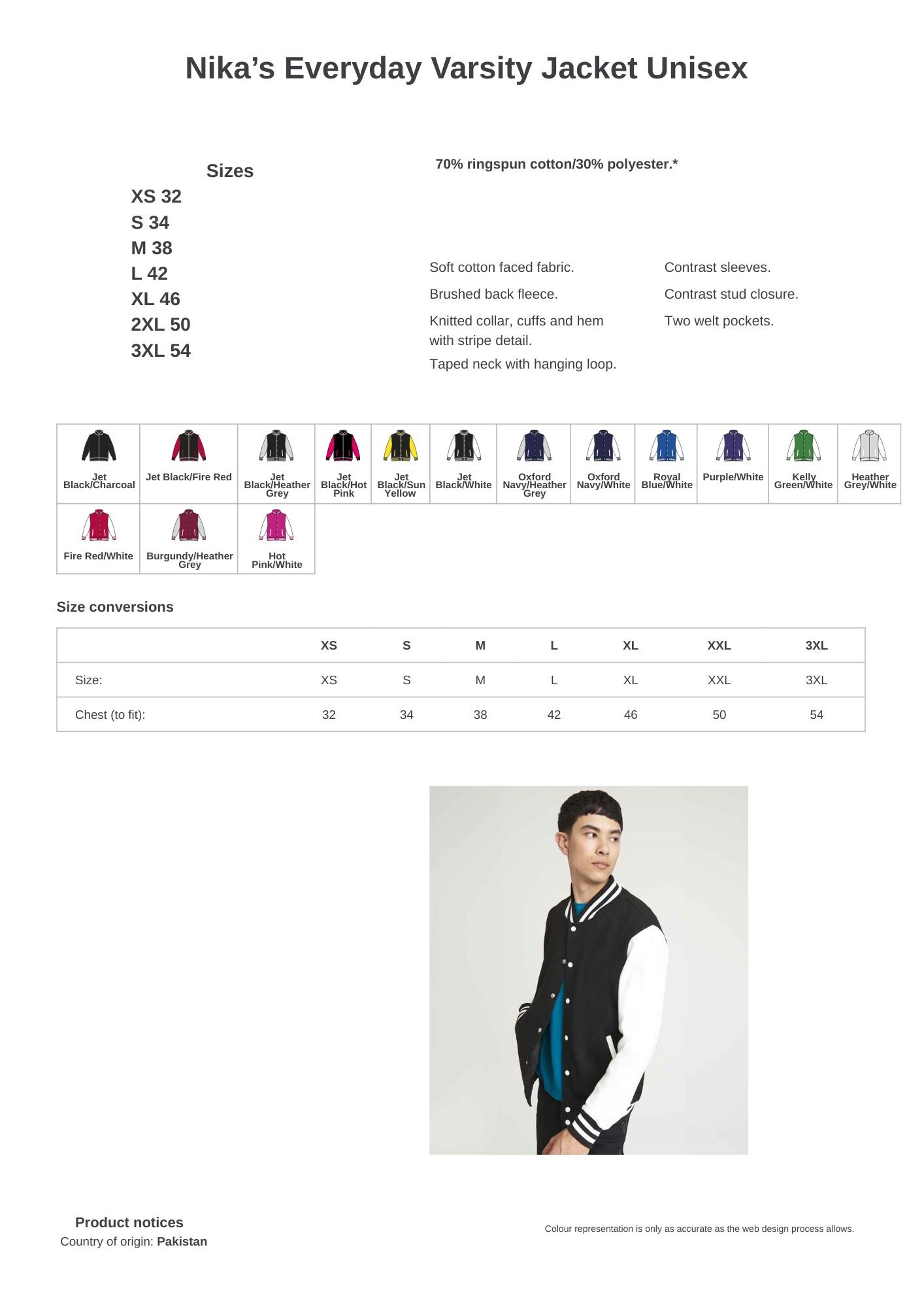 Contrast sleeves. Contrast stud closure. Two welt pockets.